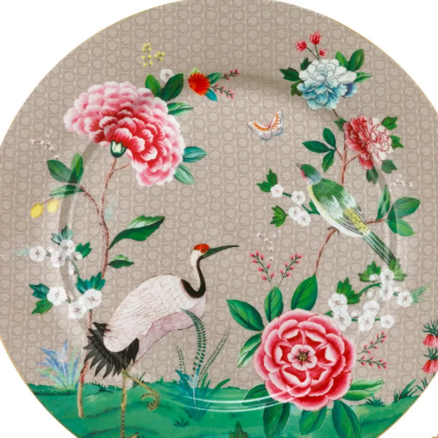 A coleção não se limita a peças básicas de porcelana. Blushing Birds Cáqui ainda traz prato esmaltado, tigelas esmaltadas, prato para bolo, travessas ovais, açucareiro e pote multiuso com tampa.