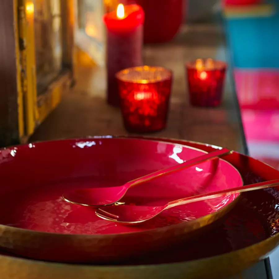Irreverentes como tudo na PiP Studio®, as versões de colheres e garfos esmaltados fazem o maior sucesso. São encontrados em conjuntos de 4 colheres e 4 garfos com cores mistas: vermelho e cáqui. Completando a coleção, um set de colheres esmaltadas vermelhas para servir salada.